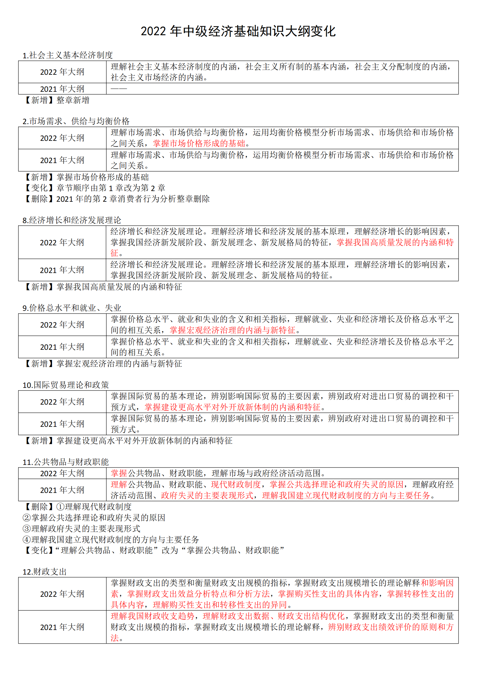 中级经济师基础知识大纲变化